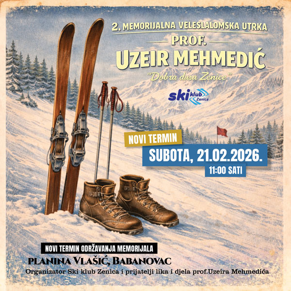 Subota, 21.02.2026. godine, s početkom u 11:00 sati, na planini Vlašić održat će se 2. Memorijalna veleslalomska utrka u čast prof. Uzeira Mehmedića, pod sloganom: „Dobra duša Zenice“
